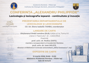 În seria Conferințelor „Alexandru Philippide”, Institutul de Filologie Română „Alexandru Philippide”, prin Departamentul de lexicologie și lexicografie, organizează manifestarea cu titlul Lexicologia și lexicografia ieșeană – continuitate și inovație, în cadrul căreia coordonatoarea echipei de lexicografi, CS I dr. Elena Isabelle Tamba, va face o Prezentare a Departamentului de lexicologie