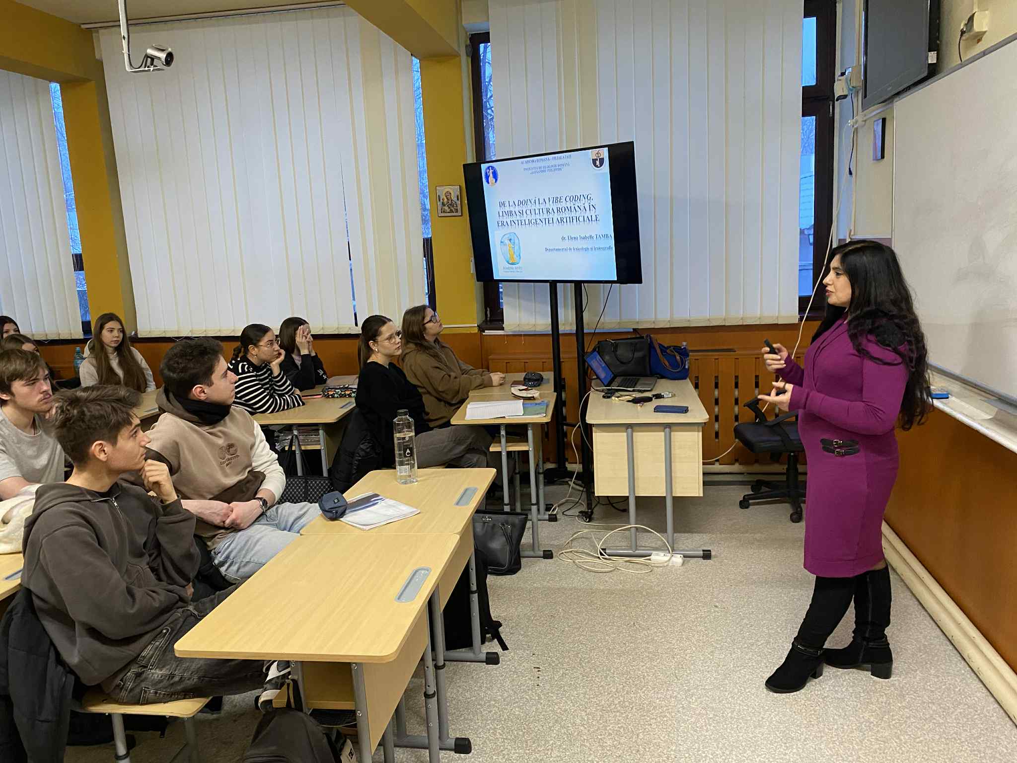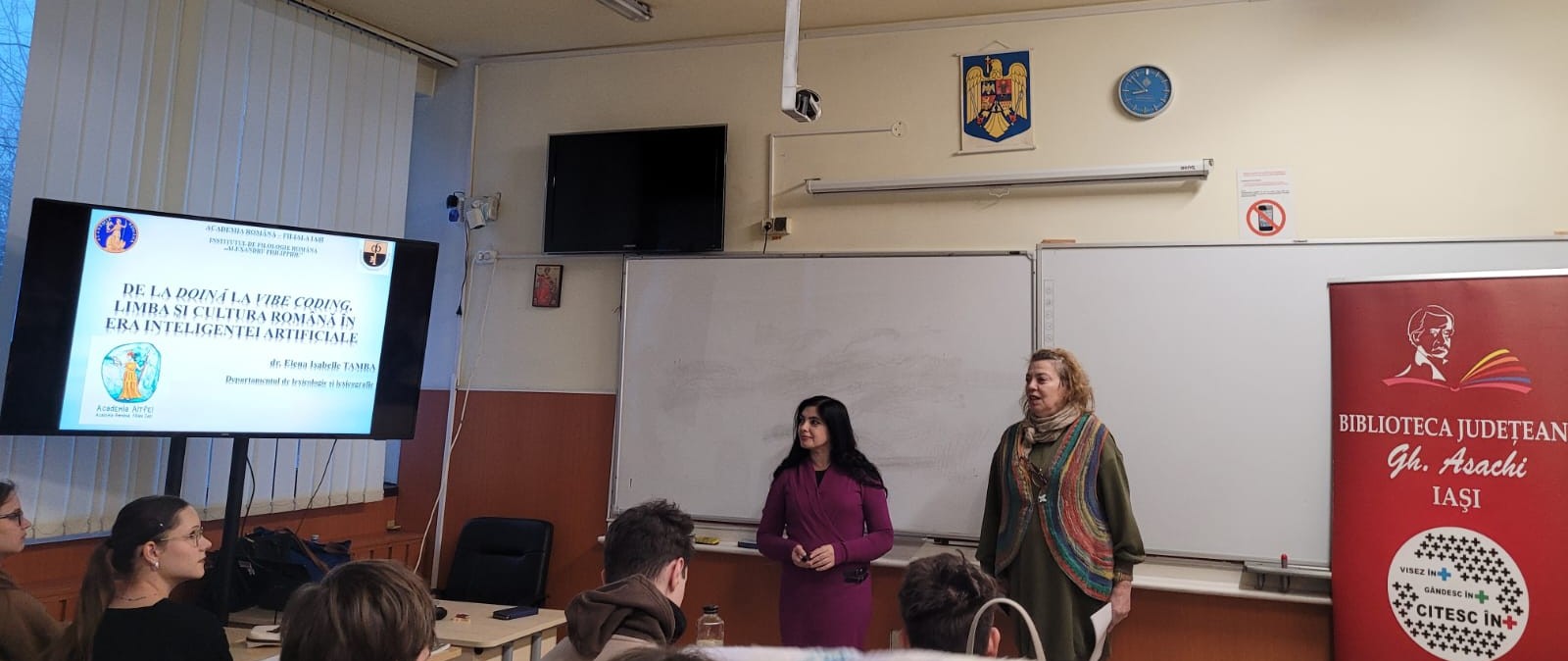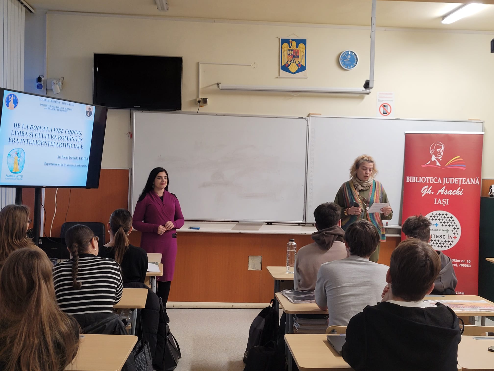 Dr. Elena Isabelle Tamba, coordonatoare a Departamentului de lexicologie și lexicografie de la Institutul de Filologie Română „Alexandru Philippide”, Academia Română, Filiala Iași, a moderat o discuție pornind de la o prelegere cu tema: De la doină la vibe coding. Limba și cultura română în era inteligenței artificiale pentru elevi de la Colegiul Național „Emil Racoviță” din Iași, coordonați de prof. Roxana Ioana Arhire. Discuția a avut în vedere modul în care limba și cultura română s-au schimbat de-a lungul timpului, de la formele tradiționale de exprimare, cum este doina, până la noile moduri de a crea și comunica în mediul digital, inclusiv cu ajutorul inteligenței artificiale, de exemplu prin vibe coding.