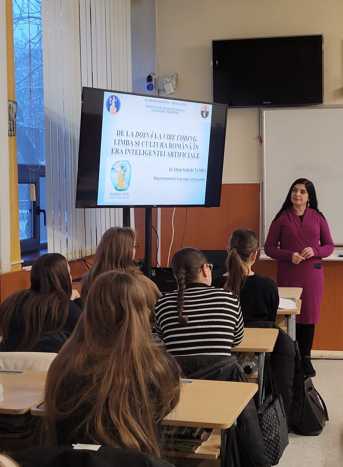 Dr. Elena Isabelle Tamba a ținut o prelegere cu subiectul: „De la hârtie la digital – limba română în era inteligenței artificiale” pentru elevi și profesori de la Colegiului Național Pedagogic „Vasile Lupu” din Iași.