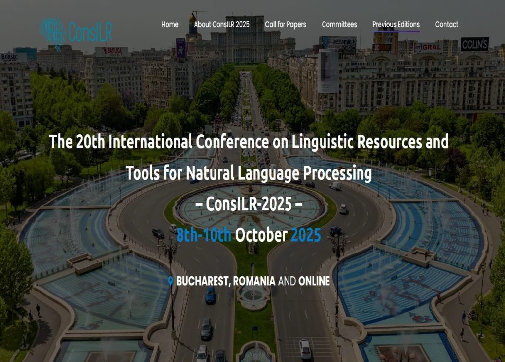 „Resurse lingvistice și instrumente pentru prelucrarea limbajului natural”. ConsILR-2025