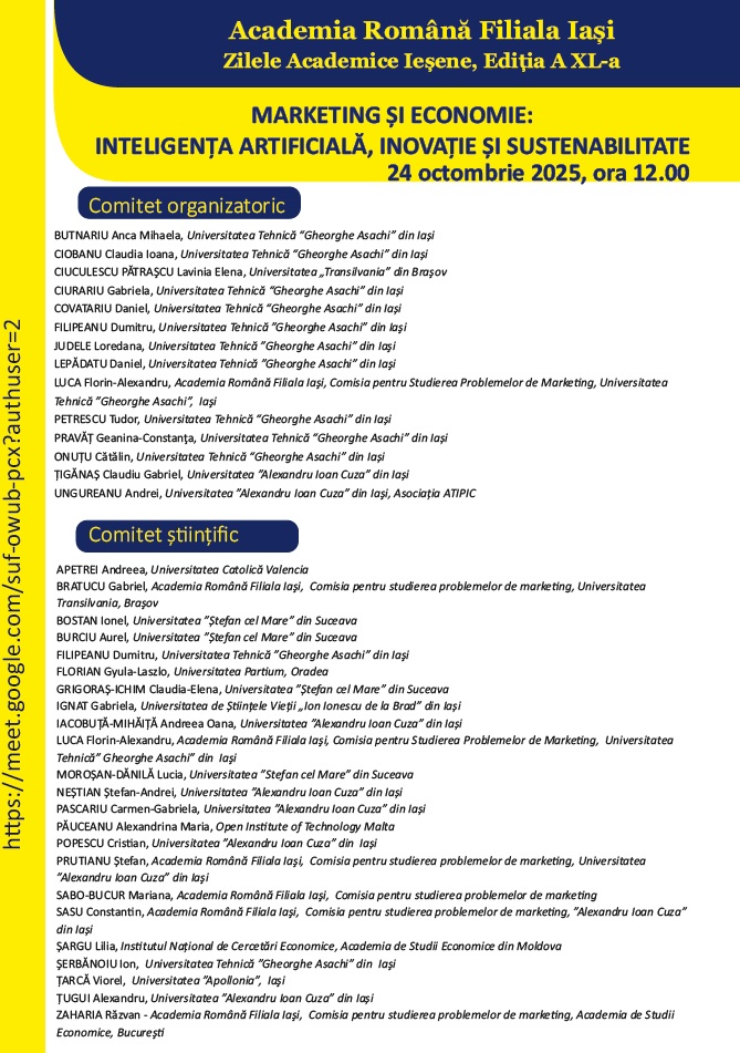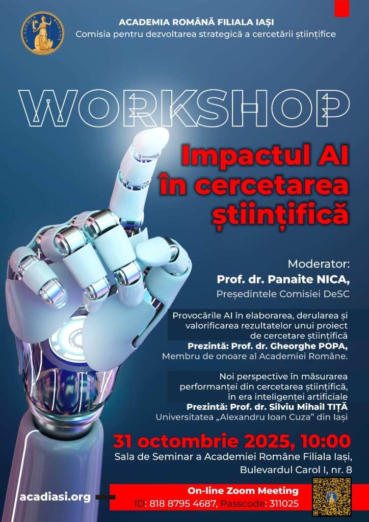 În cadrul celei de a XL-a ediție a Zilelor Academice Ieșene, vineri 31 octombrie 2025, începând cu ora 10, în sala de seminar a Academiei Române Filiala Iași, din Bulevardul […]