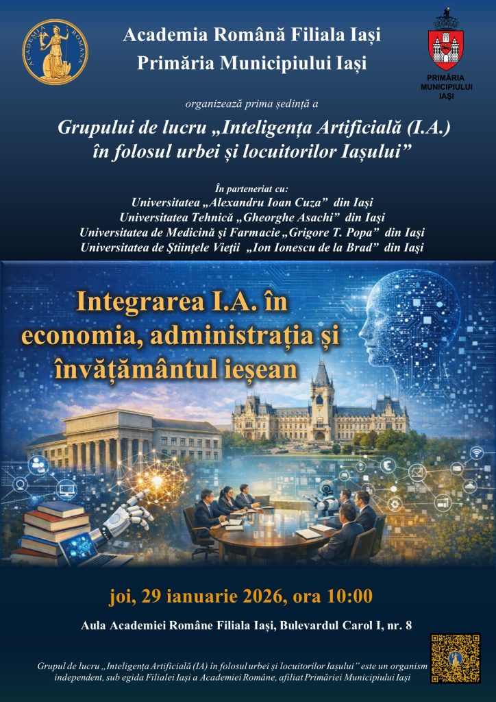 Grupul de lucru „Inteligența Artificială (I.A.) în folosul urbei și locuitorilor Iașului” este un organism independent, sub egida Filialei Iași a Academiei Române, afiliat Primăriei Municipiului Iași. Grupul de lucru […]