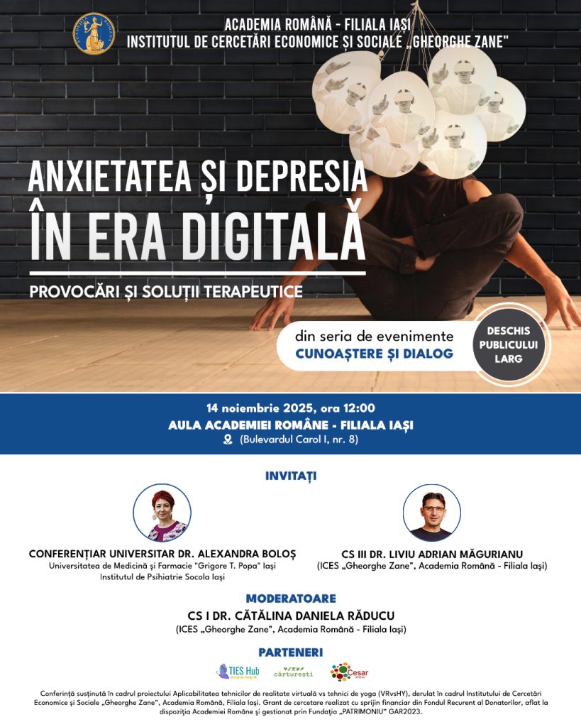 Anxietatea și depresia în era digitală: provocări și soluții terapeutice (eveniment din seria Cunoaștere și dialog)