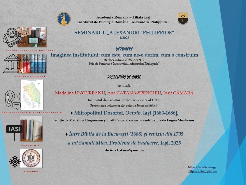 În cadrul celei de a XL-a ediție a Zilelor Academice Ieșene, vineri 31 octombrie 2025, începând cu ora 10, în sala de seminar a Academiei Române Filiala Iași, din Bulevardul […]