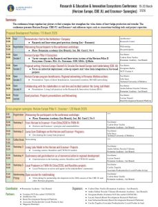 În perioada 19–20 martie va avea loc conferința „Research, Education & Innovation Ecosystems”, un eveniment dedicat consolidării colaborării dintre mediul de cercetare, educație și inovare, prin valorificarea sinergiilor dintre programele europene Horizon Europe, CBE JU (Circular Bio-based Europe Joint Undertaking) și Erasmus+. Conferința își propune să reunească actori relevanți din