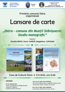 Lansarea volumului „Ostra – comuna din Munții Stânișoarei, Studiu monografic“, autori: Daniela Matei, Viorel Chiriță, Magdalena Lupchian