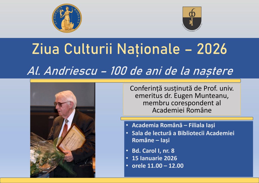 La împlinirea a 160 de ani de la înființarea Academiei Române, Institutul de Filologie Română „Alexandru Philippide”, Academia Română – Filiala Iași, alege să serbeze Ziua Culturii Naționale prin evocarea uneia dintre personalitățile care au contribuit la consolidarea școlii filologice ieșene, cercetători și profesori a căror activitate ne-a lăsat drept moștenire opere valoroase și utile deopotrivă specialiștilor și celor interesați de limba și de cultura română. Profesorul Al. Andriescu a fost Director al institutului nostru în perioada 1984 – 1990, când a ocupat funcția de Decan al Facultății de Filologie a Universității „Alexandru Ioan Cuza” din Iași.